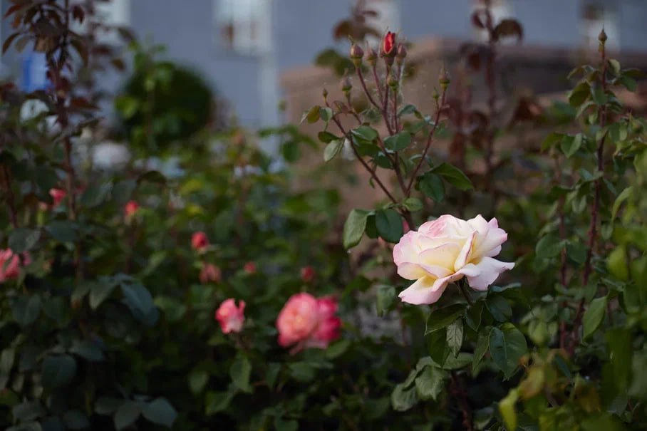 Розы для обильного цветения повторно подкармливают минеральными удобрениями, обрезают на кустах отцветшие бутоны, пропалывают и рыхлят грунт. Планомерный уход специалисты осуществляют и за однолетними цветами.