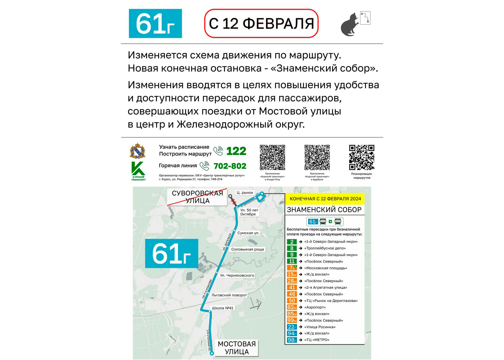 В Курске с 12 февраля на маршруте 61г будет установлена новая конечная остановка