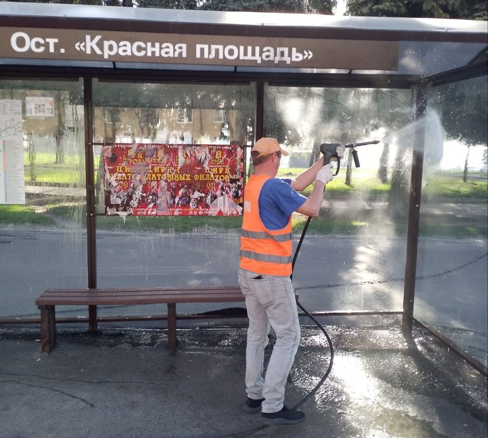 Принимают участие в этом 57 рабочих и 46 единиц техники. Кроме ручной и механической уборки специалисты также моют остановочные павильоны.