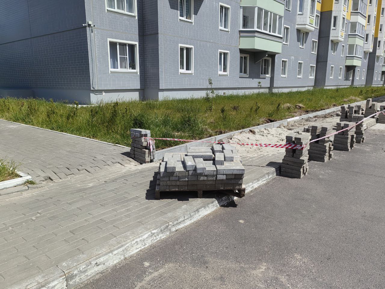 Рабочие оградили разрушенные места сигнальной лентой. Сейчас на участке обустраивают песочную подушку и готовятся к укладке плитки.
