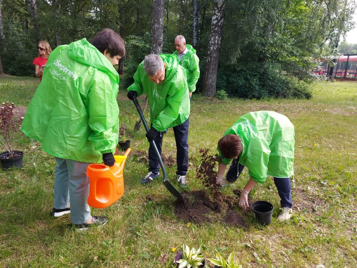 Сажали многолетние растения: саженцы калины обыкновенной, шалфея дубравного, хоста, барбариса и пузыреплодника. Они смогут радовать посетителей парка своей красотой не один год.