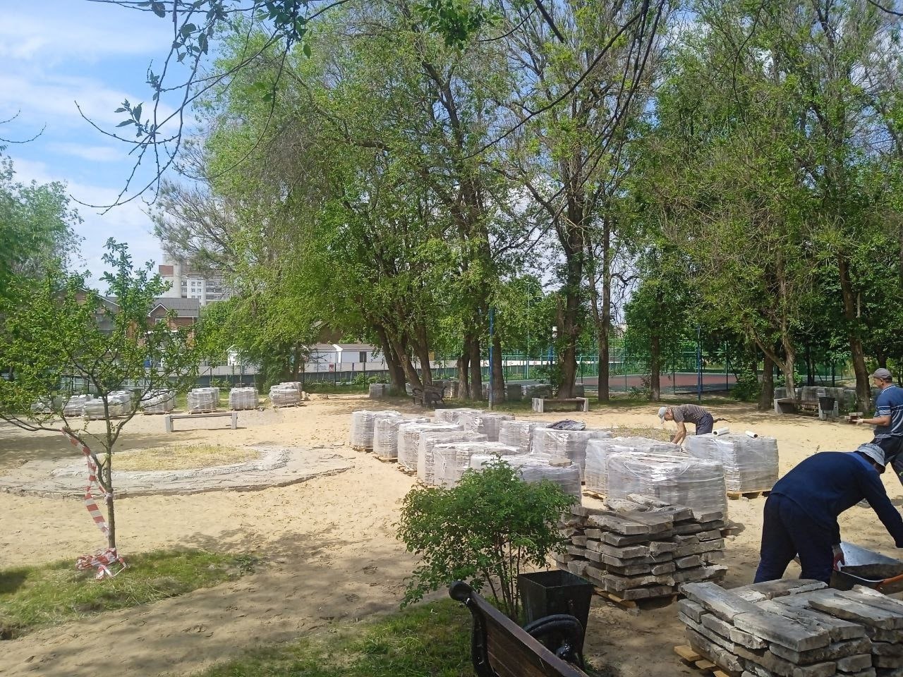 Специалисты подрядной организации уже демонтировали старую плитку и приступили к установке бордюров. Работы идут по графику.