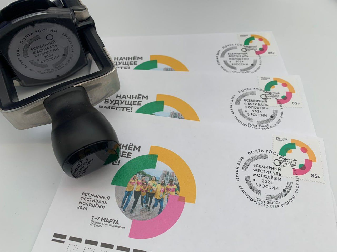 Дополнительно к выпуску почтовой марки изданы конверты первого дня и изготовлены штемпели специального гашения для Москвы, Калининграда и Сочи. Также выпущен картмаксимум, виньетка, конверт первого дня с гашением для Сочи и художественная обложка, внутри которой почтовая марка.— Почта России меняется на глазах — в нашей команде всё больше молодых, амбициозных, творческих сотрудников, стремящихся создавать лучшее будущее. Именно таких ребят собрал фестиваль. Уверена, что марка, посвященная Всемирному фестивалю молодежи, станет для участников и всех нас напоминанием о ярком событии и знаком дружбы и прогресса, — рассказала о выпуске новой почтовой марки директор по внешним коммуникациям Почты России Екатерина Куманина.