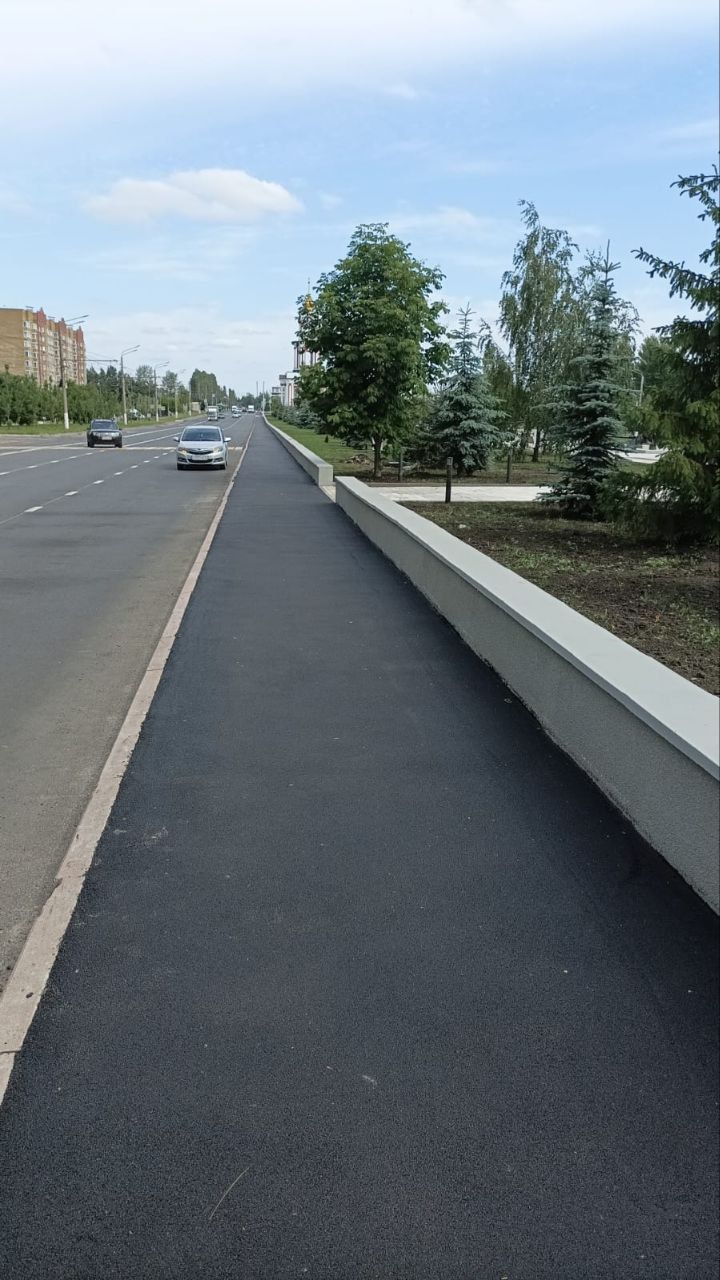 В минувшие выходные рабочие завершили укладку асфальтобетонной смеси SP-11 и ремонтировали тротуары, уложив 1880 кв.