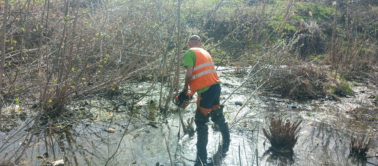 В Железнодорожном округе Курска расчищают водопропускные трубы и приямки