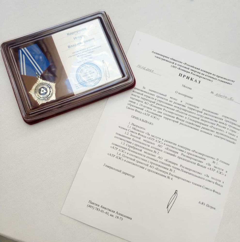 Хорошая новость пришла сегодня из столицы. Глава города Курчатова Игорь Корпунков награжден медалью «За заслуги в развитии концерна «Росэнергоатом» II степени.