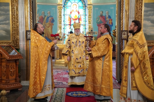 Его Высокопреосвященству сослужило духовенство собора.