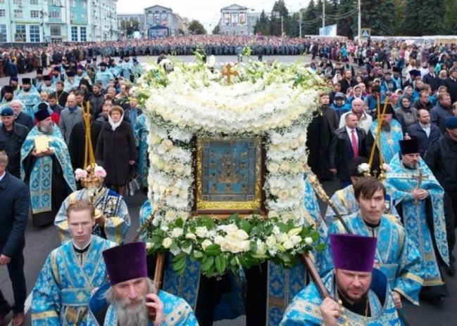 15.00 – встреча святой иконы в г. Курске на пл. Перекалького, по встрече иконы начало крестного хода к Знаменскому собору, молебен по прибытию иконы.