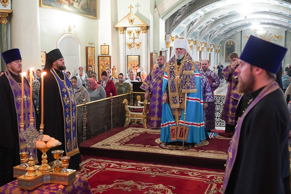 26 сентября 2024 года, в канун праздника Всемирного Воздвижения Честного и Животворящего Креста Господня, митрополит Курский и Рыльский Герман совершил всенощное бдение с чином Воздвижения Креста в Знаменском соборе Курска.