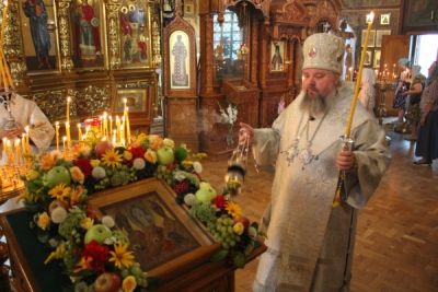 Накануне праздника Преображения Господа Бога и Спаса нашего Иисуса Христа Преосвященнейший епископ Паисий совершил Всенощное бдение в Свято-Троицком кафедральном соборе города Щигр