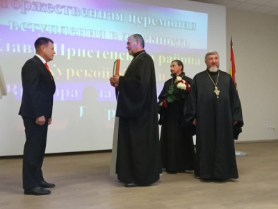 Церемония началась с выноса флага Российской Федерации, флага Курской области и Устава Пристенского района. На инаугурацию прибыли почётные гости: депутат Государственной Думы Ольга Михайловна Германовна, заместитель Председателя Правительства Курской области Чуркин Александр Владимирович, заместитель Губернатора Курской области Виктор Николаевич Карамышев, главы соседних районов, главы муниципальных образований, руководители предприятий и организаций. Настоятель Храма Покрова Пресвятой Богородицы п. Пристень иерей Иоанн Суринец вместе с протоиереем Александром Добромировым и протоиереем Василием Негер благословили на добрые свершения во благо Пристенского района и пожелали вновь избранному главе плодотворной работы, неиссякаемой энергии, радости созидания, успехов во всех начинаниях, чтоб претворить в реальность все идеи и замыслы, направленные во благо процветания и благополучия жителей.