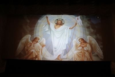 Мы с вами совершили Божественную Литургию, причастились Святых Христовых Таин и соединились с Господом, совершили крестный ход, прославив Воскресшего Спасителя, а сейчас посмотрим, как прославляют Воскресшего Христа наши юные воспитанники, которые вместе с нами радуются этому празднику. Всё закладывается с юности: и нравственность, и любовь к Отечеству, и любовь к Богу. Поэтому я очень рад, что у нас проходят такие Пасхальные и Рождественские фестивали, когда от каждого района могут выступить замечательные ребята и девчата, прославляя Господа. И так понемножку они приобщаются ко Христу, уподобляются апостолам, которые проповедовали по всему миру, а дети проповедуют Господа своими талантами, которые Он им дал.