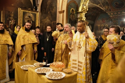 По окончании Божественной литургии был совершен чин резания Славского колача и освящения праздничной кути, после чего обратился со словами приветствия епископ Моравичский Антоний.