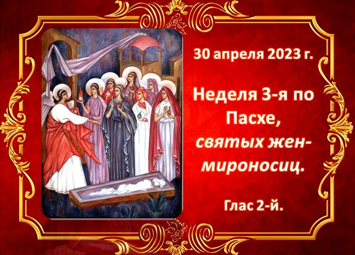 В Неделю 3-ю по Пасхе, Православная Церковь прославляет святых жен-мироносиц, а так же святых праведных Иосифа Аримафейского и Никодима за их верность ко Господу, за любовь к Нему до Креста.