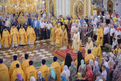 Сегодня торжественную Божественную Литургию в главном храме республики - кафедральном соборе святого праведного воина Феодора Ушакова, в котором отмечался престольный праздник - возглавили сразу несколько церковных иерархов: митрополит Курганский и Белозерский Даниил, митрополит Саранский и Мордовский Зиновий, митрополит на покое Елисей (Иванов), епископ Ардатовский и Атяшевский Вениамин, епископ Железногорский и Льговский Паисий.