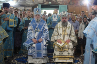 По окончании Божественной литургии архипастыри с клиром и паствой совершили Крестный ход, духовенство и все прихожане обошли вокруг старинного храма с чтимой храмовой иконой. У алтаря было прочитано Евангельское зачало, а на каждой из 4-х сторон храма митрополит Герман и епископ Паисий окропляли молящихся святой водой.