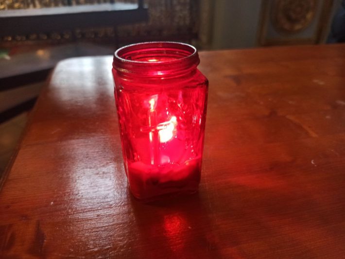 Накануне, в Пасхальную ночь в курс был доставлен Благодатный огонь. После богослужения верующие смогли унести домой частичку огня.