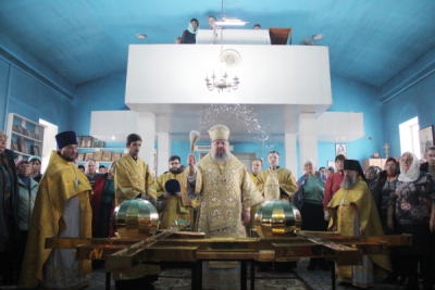 В Неделю о Страшном Суде Преосвященнейший епископ Паисий совершил Литургию и освящение новосооруженных купольных крестов