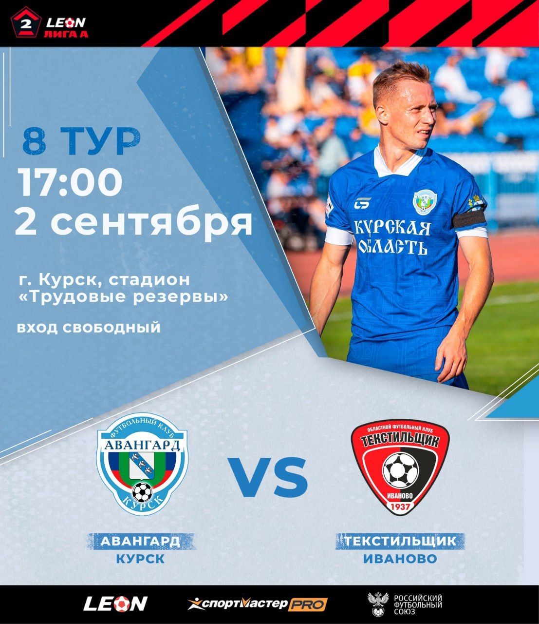 В настоящий момент команды – соседи в турнирной таблице: «Авангард» на 3 месте и имеет 13 очков, «Текстильщик» – на 4 строчке с 10-ю очками. Поддержим наших ребят и поможем им закрепить успех!Вход свободный. Билеты можно будет получить в кассах стадиона в день матча.