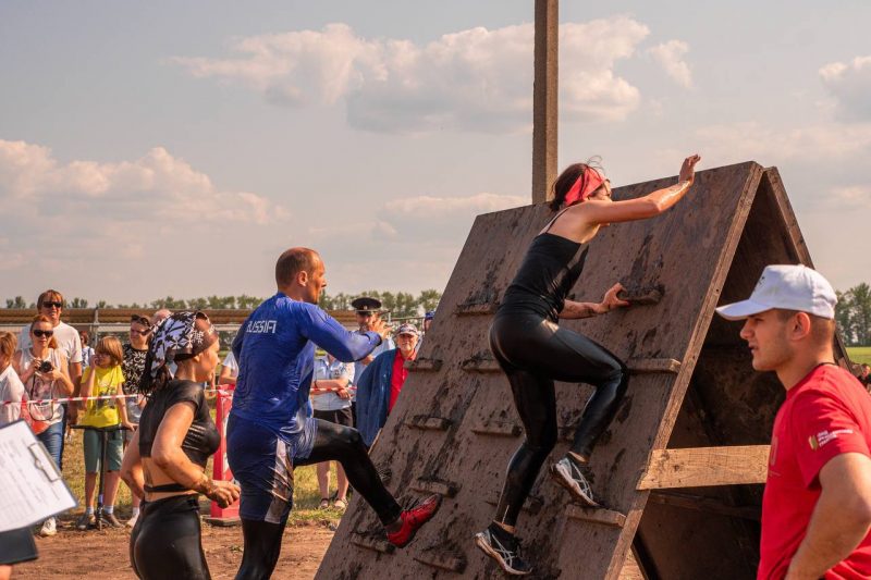 Участники преодолели полосу препятствий, состоящую из полосы с автопокрышками, ямы с водой, полосы из шин и другие преграды.