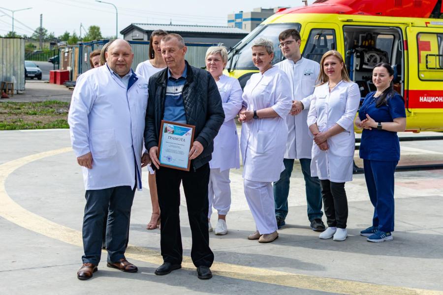 Главврач Курской областной больницы Михаил Лукашов вручил водителям службы санавиации благодарственные грамоты.