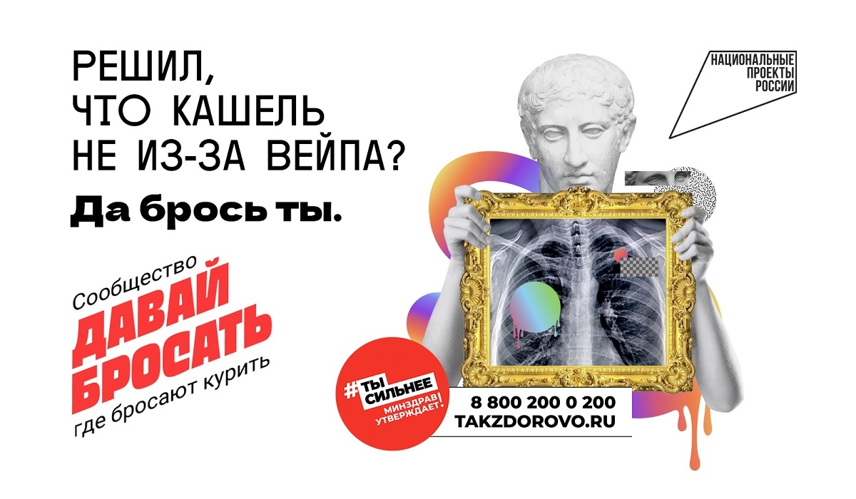 Мотивация людей вести здоровый образ жизни - приоритет нацпроекта «Демография». Получить консультацию по отказу от курения можно в центрах здоровья, которые работают в регионах. За поддержкой в данном вопросе также можно обратиться к сообществу «Давай бросать» в социальной сети Вконтакте (https://vk.com/davaibrosat) и мессенджере Телеграм (https://t.me/davaibrosat). В группах можно найти полезные советы и практики по отказу от курения, а еще мотивирующие истории тех, кто уже отказался от зависимости.