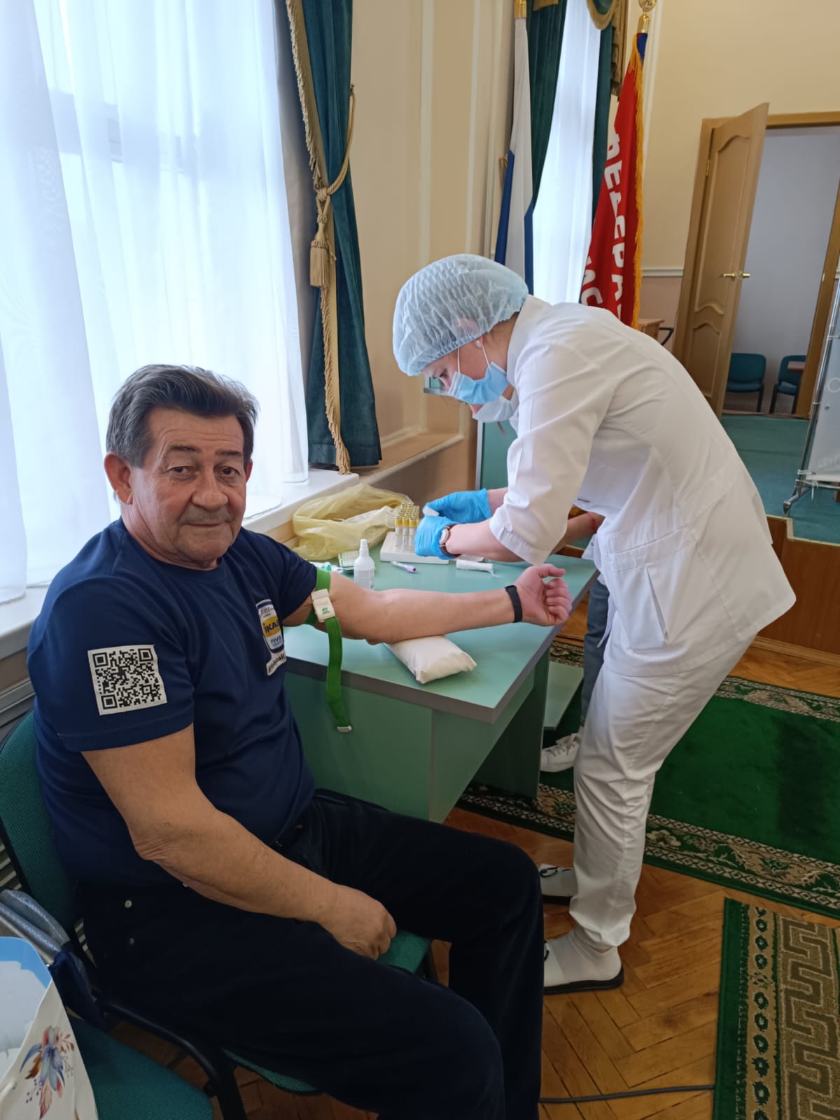 Медицинским работникам ОБУЗ «Курская городская больница№1 им. Н.С. Короткова» был выделен зал заседаний, в котором можно было пройти анкетирование, сдать общий и биохимический анализ крови, побывать на приеме у врача терапевта, измерить артериальное давление и пройти ЭКГ.