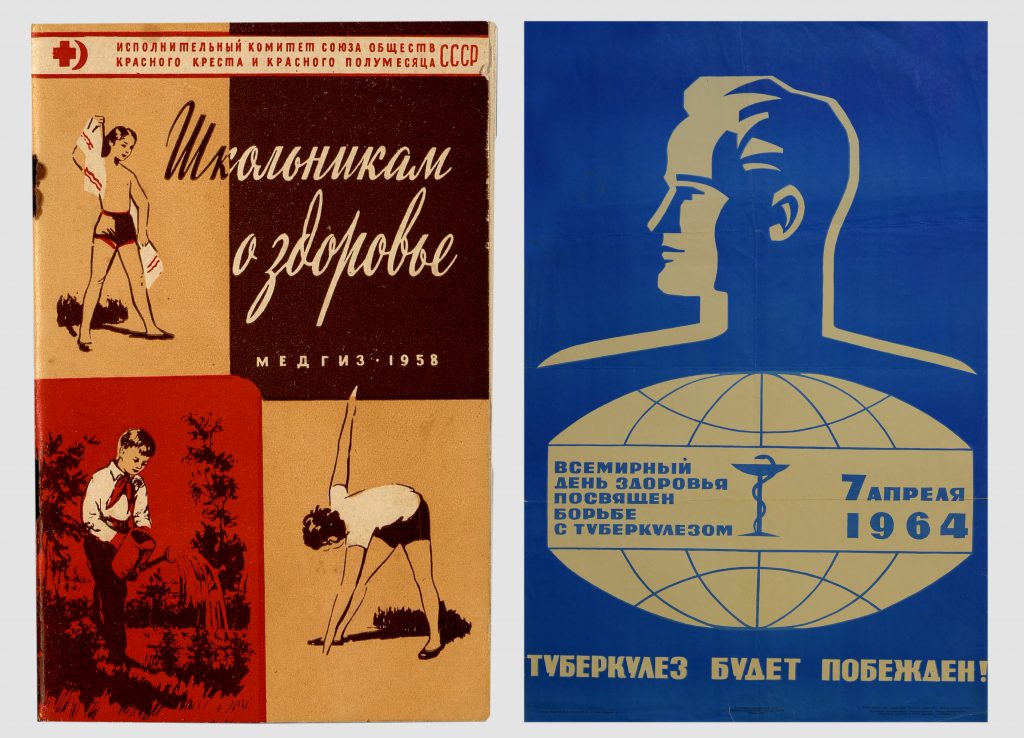 Брошюра «Школьникам о здоровье». (Сборник стихов и рассказов), Сост. И.И. Мильман и др. 1958 год. Плакат «7 апреля 1964. Всемирный день здоровья, посвящен борьбе с туберкулезом. Туберкулез будет побежден!». 1964 год. Из фондов Курского областного краеведческого музея.