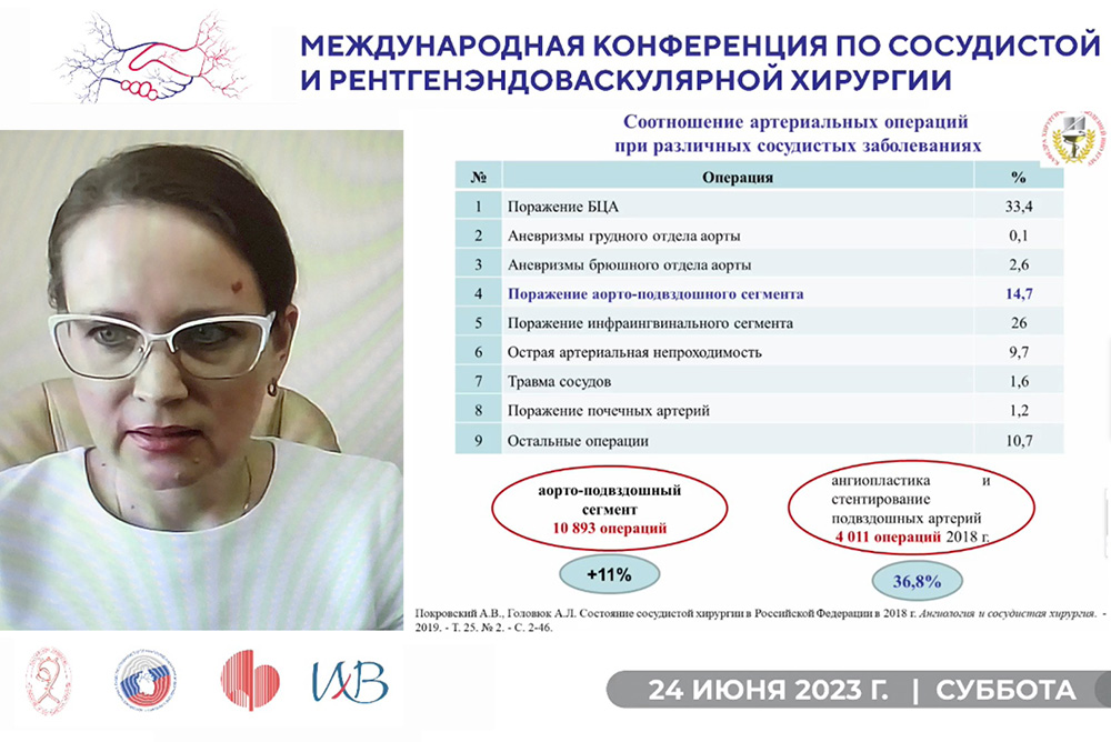 На конференции была презентация национальных рекомендаций 2023 года: аневризмы грудной и торакоабдоминальной аорты, аневризмы брюшного отдела аорты, острая ишемия нижних конечностей и хроническая ишемия, угрожающая потерей конечности, тромбоз глубоких вен конечностей, варикозное расширение вен таза и вульвы.