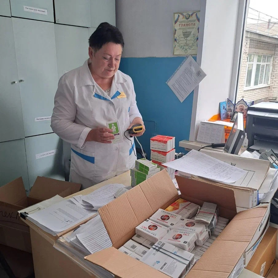 Лекарственные препараты уже поступили в Дмитриевскую ЦРБ и сейчас проходят маркировку в государственной системе «Честный знак».