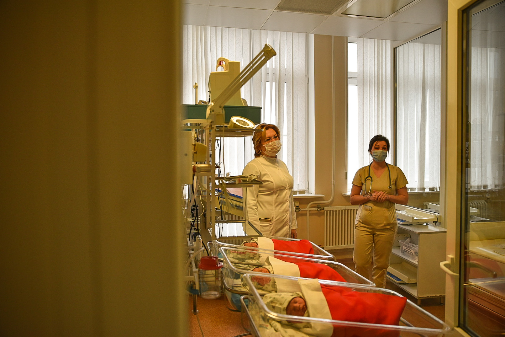 Журналистов провели в отделение к новорожденным. За пять дней нового года в перинатальном центре родились 43 малыша - 25 девочек и 18 мальчиков. Самой первой на свет появилась девочка Люба - она родилась в 00.43.