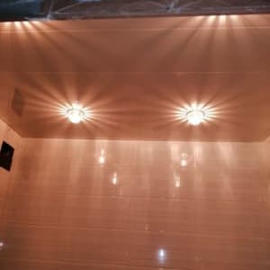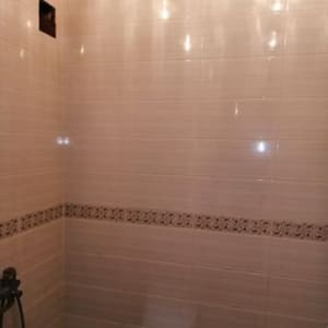 Ванна с туалетом отделаны кафелем и сделаны натяжные потолки.