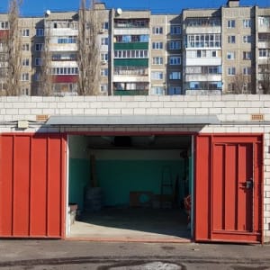 Гараж окрашен внутри, доработаны ворота, есть полки и стеллаж, карниз над воротами. Есть электричество. Все делали для себя.